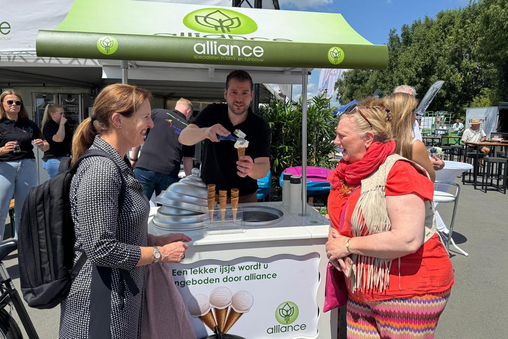 Een schitterend fruitbedrijf, prachtig weer, goedgestemde fruittelers, een mooi programma en een grote diversiteit aan standhouders. Deze ingrediënten maakten de door adviesbureau Delphy en de NFO georganiseerde appeldag op donderdag 3 juli tot een groot succes. Het aantal bezoekers is bij de redactie nog niet bekend, maar het waren her heel, heel veel. Fruittelers – en daarnaast ook veel oud fruittelers- uit alle hoeken van Nederland waren aanwezig in het Betuwse Wadenoijen. Naast de inhoudelijke informatieoverdracht zorgden veel standhouders ook voor een hapje en een drankje voor de bezoekers. Hierbij waren vooral het ijs van Alliance, de verse fruitsmoothies van VGB watertechniek & partners en de broodjes hamburger van AgruniekRijnvallei erg in trek.