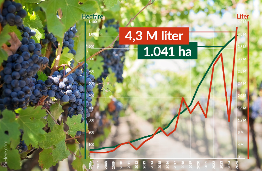Die groei is geen toeval. Wijngaarden die enkele jaren geleden zijn aangeplant, bereiken nu hun volle wasdom. In combinatie met gunstige weersomstandigheden leidde dat tot uitzonderlijke opbrengsten.