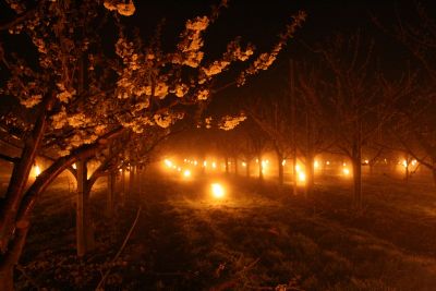 Beregening over de bomen heen wordt om diverse redenen voor steenfruit afgeraden. Er blijven daarom twee manieren over om schade door nachtvorst te verminderen: met microsprinklers onder de bomen beregenen, of de temperatuur verhogen met paraffinekaarsen of nachtvorstkachels.