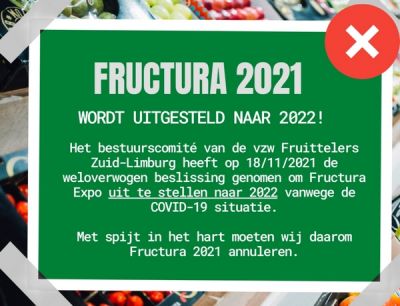 De organisatoren van de Fructura-beurs in het Belgische Hasselt hebben een nieuwe datum voor de fruitteeltbeurs gevonden. Het driejaarlijkse evenement gaat op 18, 19 en 20 mei plaatsvinden. Normaal gesproken is de Fructura beurs eind november. De editie van 2021 is echter een week voor aanvang door de organisatoren afgeblazen vanwege het Corona-virus.