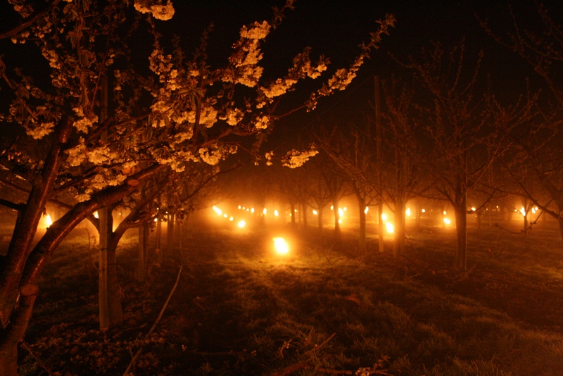 Beregening over de bomen heen wordt om diverse redenen voor steenfruit afgeraden. Er blijven daarom twee manieren over om schade door nachtvorst te verminderen: met microsprinklers onder de bomen beregenen, of de temperatuur verhogen met paraffinekaarsen of nachtvorstkachels.