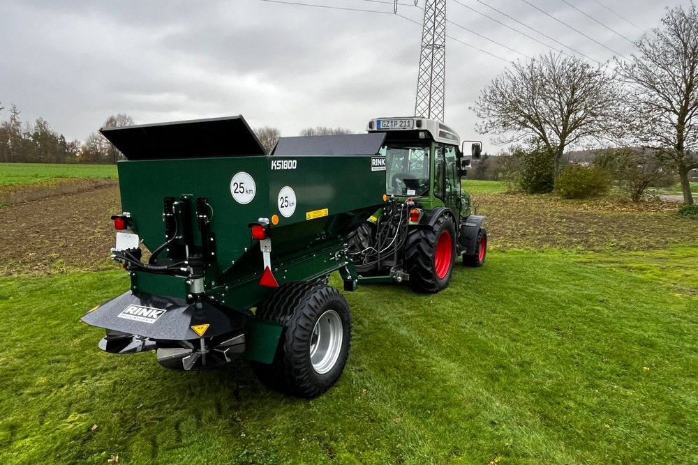 Met name de RINK KS 1200 leent zich dankzij de compacte bouw van 1,3 meter breedte en geringe gewicht uitstekend voor gebruik in boomgaarden. De machine werd speciaal ontwikkeld om kalk, gesteentemeel of gips zeer gelijkmatig en precies uit te kunnen brengen. Het strooigedeelte bestaat uit twee schotels van edelstaal met strooilepels. De strooibreedte (tot 12 meter) en strooidikte kunnen worden aangepast met traploos instelbare doseerkleppen, waardoor een nauwkeurige verdeling mogelijk is. De laadcapaciteit bedraagt 1,20 m3 en dat is als optie te vergroten tot 1,8 m3.